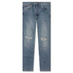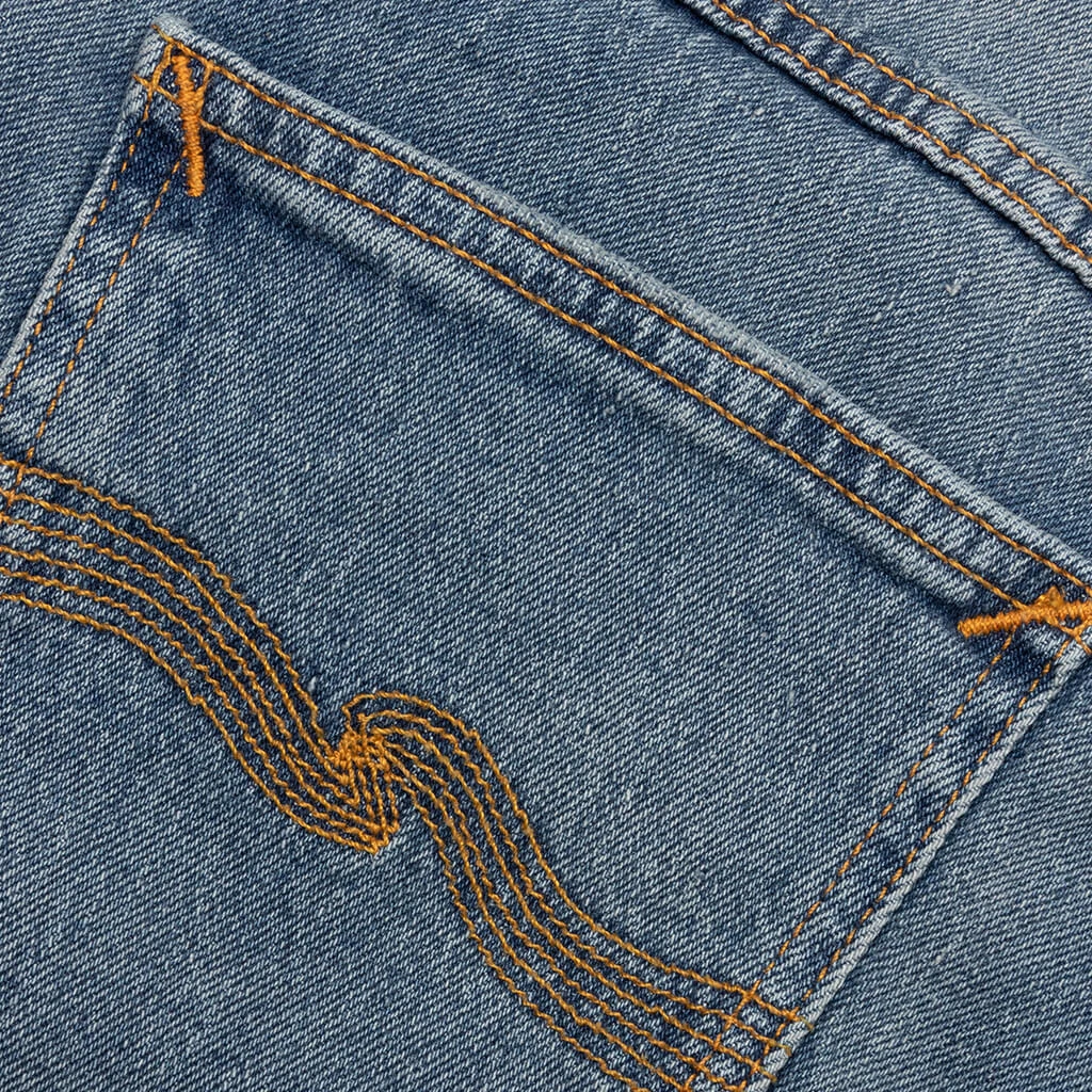 Nudie Jeans’ authentic aesthetic is heavily prevalent in the Lean Dean silhouette. Featuring a blend of organic cotton, pre-consumer recycled cotton, and recycled polyester, this stretch denim silhouette spotlights the brand’s signature orange threading that can be seen at the seams and back pocket embroidery. A zip fly and jacron patch are included, while the slim fit and mid-waist design make an appearance as well. Heavy abrasions seen at the knees tie together the look.
