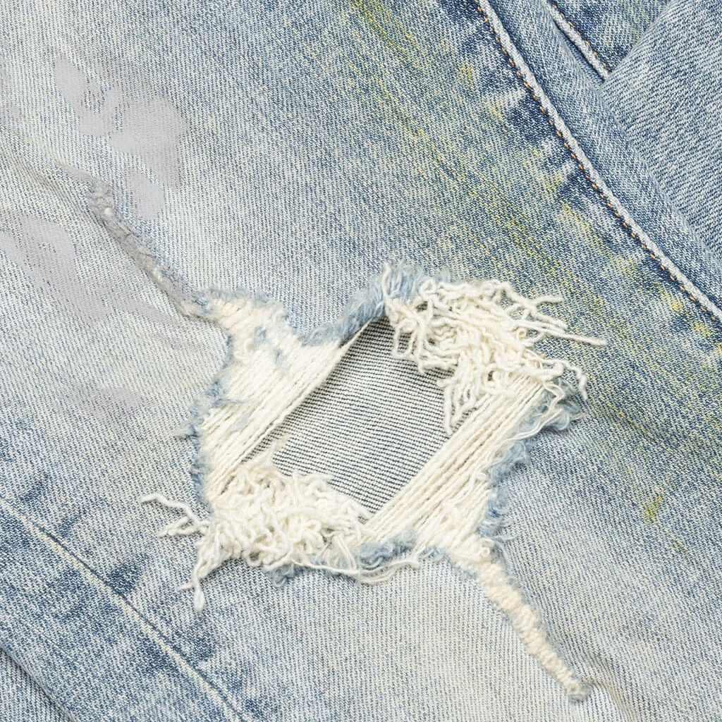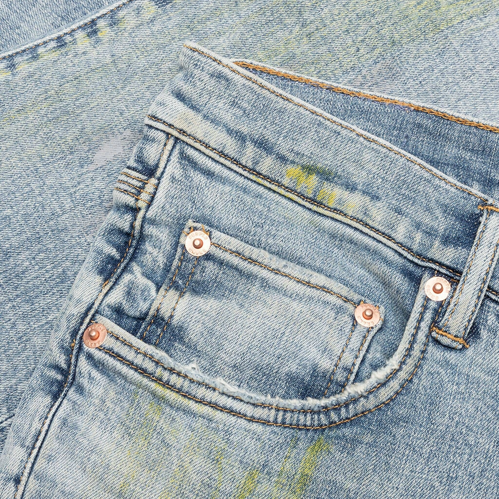 Purple Brand’s P001 jean is applicable for all styles as it takes on its latest colorway, Light Blue Vintage. A blend of cotton and elastane contributes to its premium and comfortable construction while distressed details decorate the pants. Five-pocket styling and a zip fly closure can be seen within its premium design.