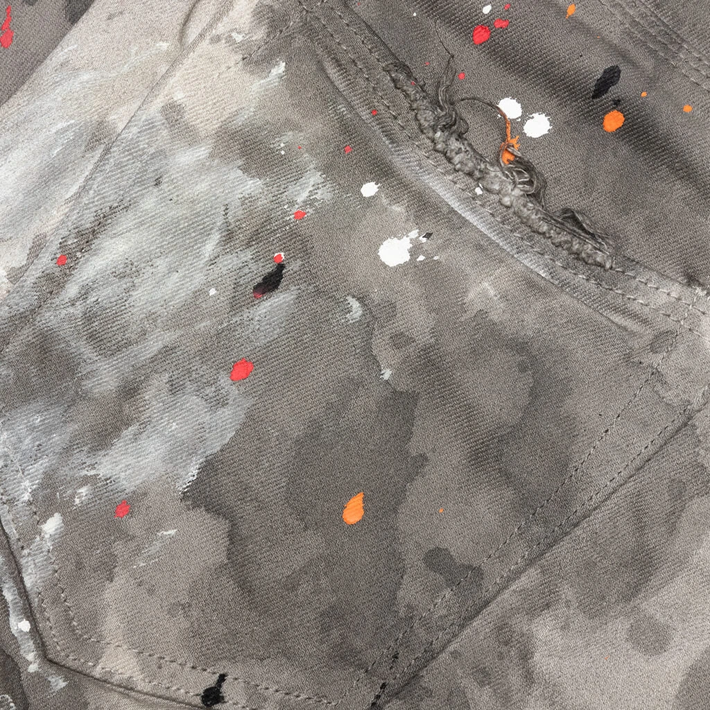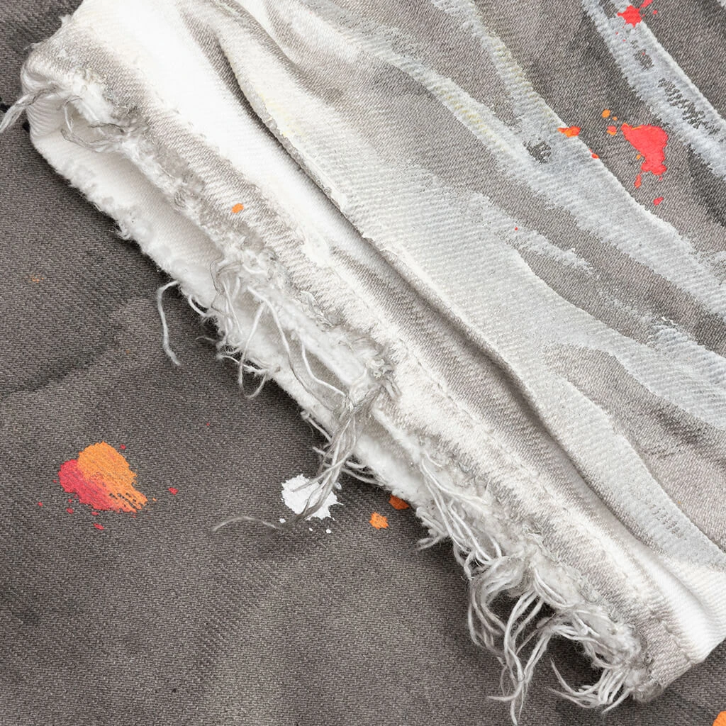 The Purple Denim P001 White Soft Wax Paint upgrades the traditional pair of jeans. Featuring a blend of cotton and lycra, the comfortable silhouette includes a unique color-transfer effect while incorporating hand-applied paint splatters. Reinforced belt loops and a button fly are placed, while the design is complete with a low rise and skinny fit.