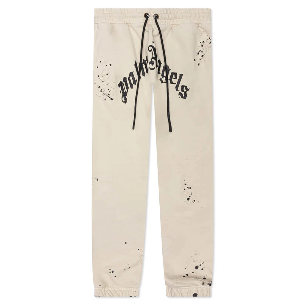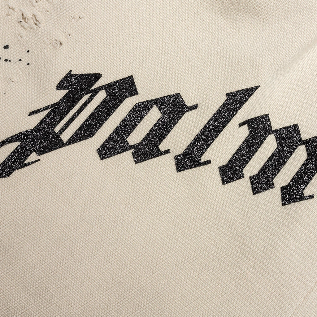 Upgrade your sweatpants to the Palm Angels GD Glittered Logo Sweatpants. Composed of cotton, the pants take on glittered branding at the front along with a handmade dripping effect. The garment-dyed design includes an elastic drawstring waistband in addition to the elastic cuffs.