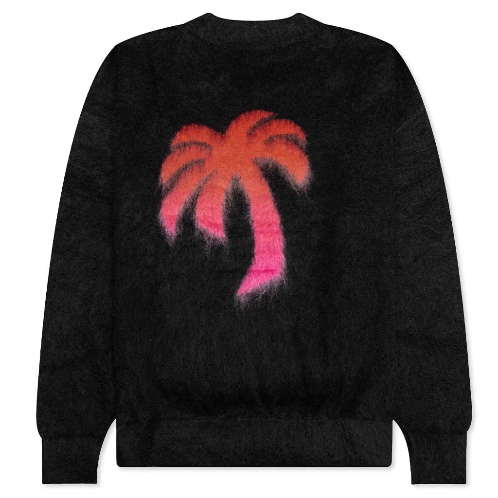 The Palm Angels The Palm Sweater Intarsia adds a dimensional touch to any design. Cut from cashmere, polyamide, and wool, the contemporary apparel item features embroidered branding at the chest. Screen-printed graphics at the rear paired with the rib-knit trims wrap up the silhouette.