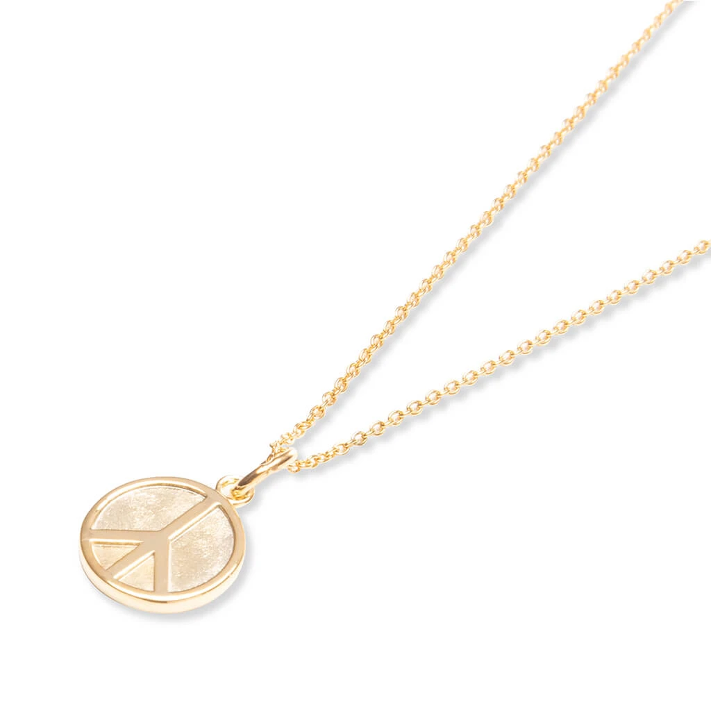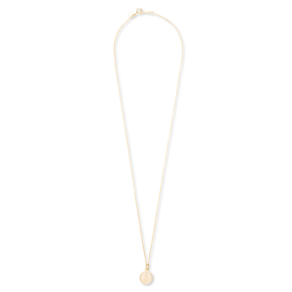 Japanese label Needles is well-versed in crafting contemporary silhouettes, as displayed in the Peace Pendant. This modern accessory incorporates a gold plated silhouette along with a lobster clasp for security. The small peace pendant completes the silhouette.