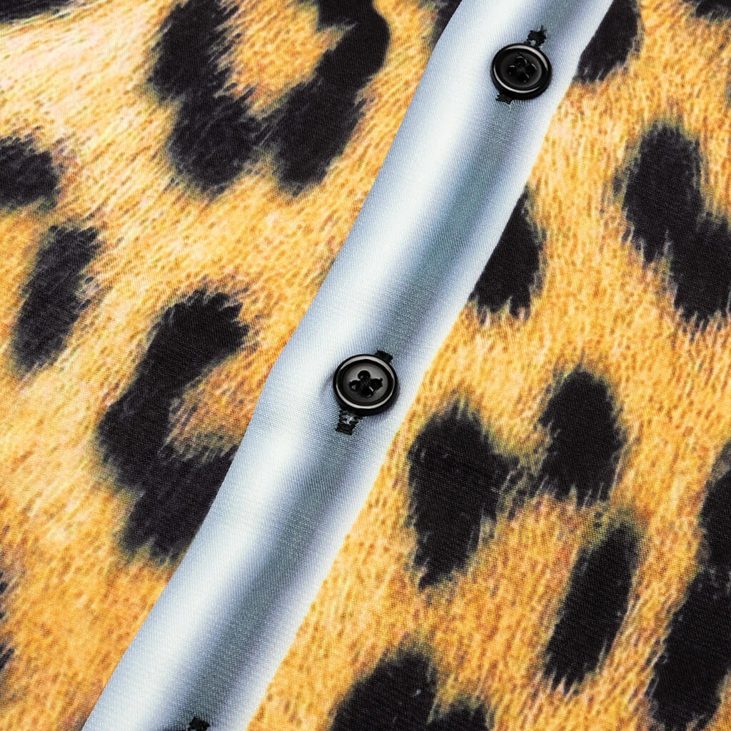 The Eddie Button-Down offers a bold touch with its cheetah print design and premium construction. Its comfortable and breathable rayon design features a camp collar style and a full-length button closure.