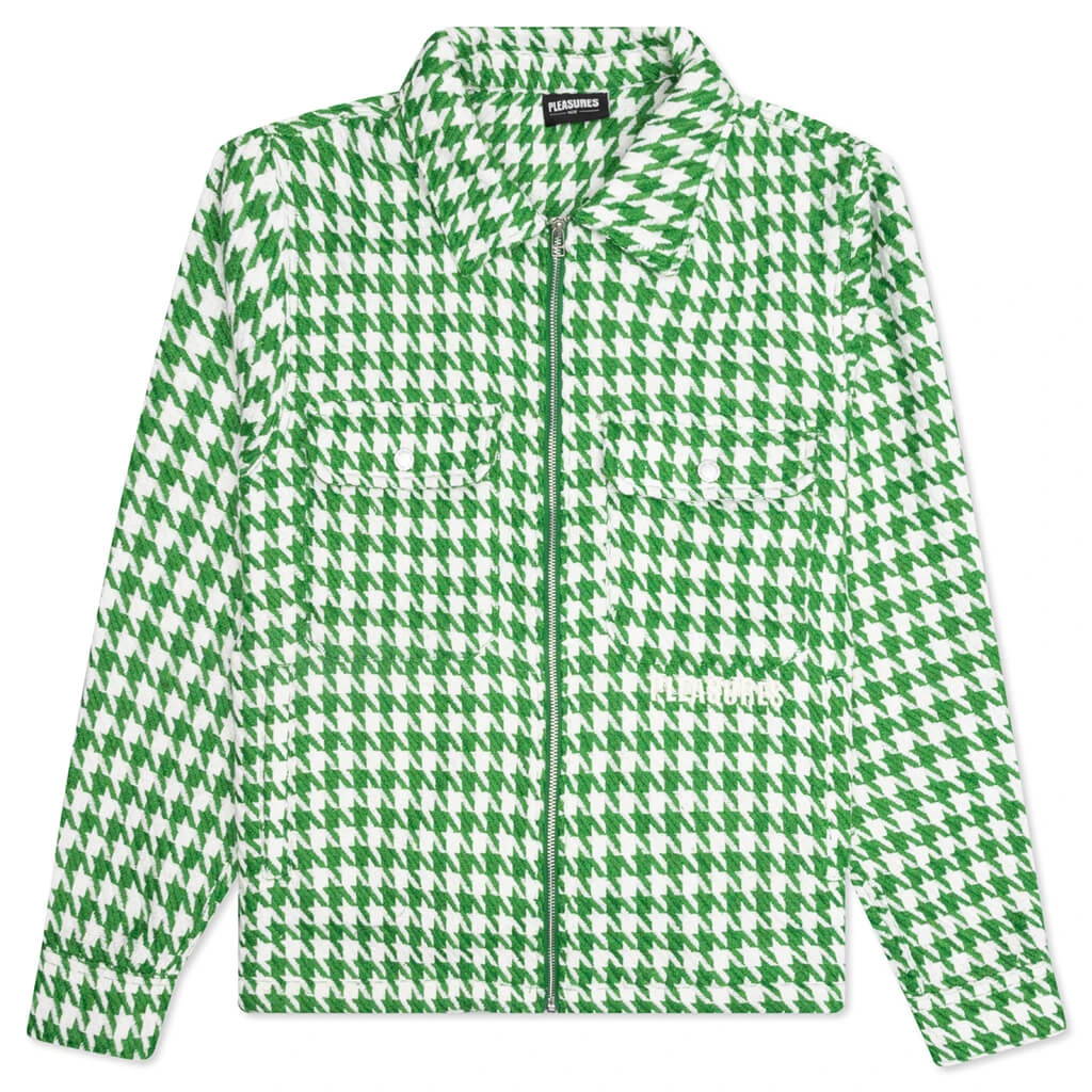 The PLEASURES Sunspots Jacket makes an impression on any apparel collection. Composed of cotton, the silhouette features a large woven houndstooth print in addition to two large front chest pockets. Embroidered branding resides at the front, while the full-zip closure secures the fit. Hand pockets are seen, completing the look.