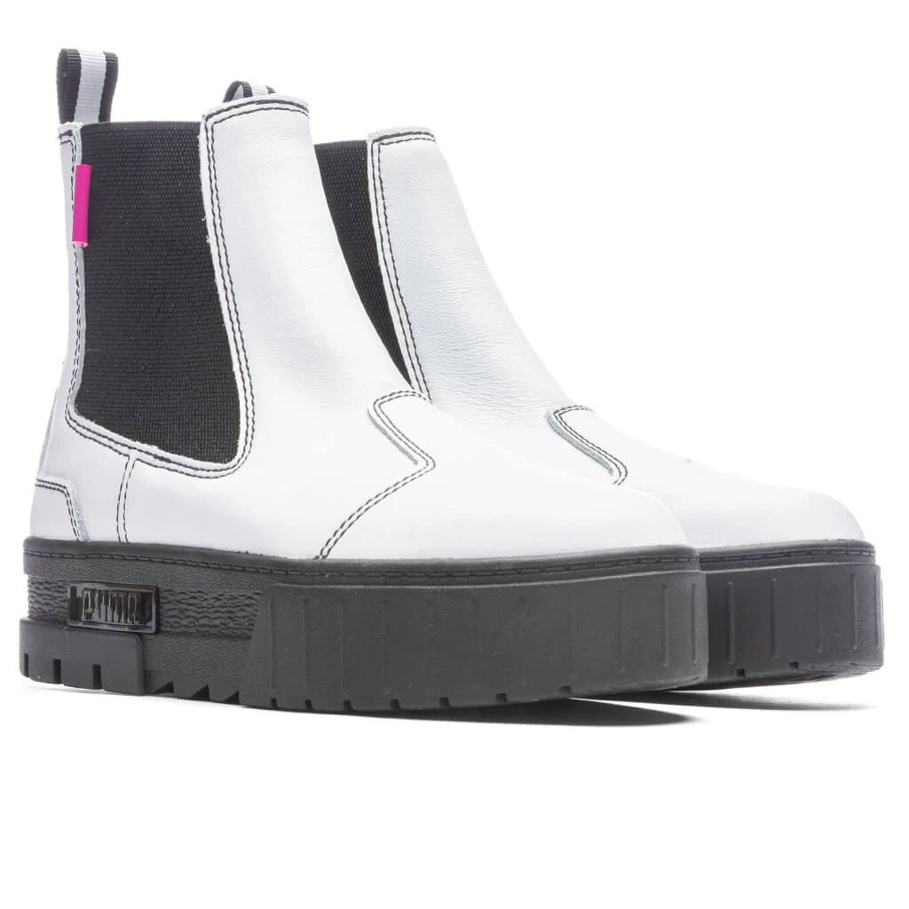 Taking on a premium aesthetic, the Puma Women’s Mayze Chelsea Pop makes an impression with its supple suede upper that offers a luxurious touch. Elastic panels and pull tabs are also seen for easy on and off, while the cushioned insole provides optimal comfort with each step. Contrasting rubber tooling adds an edgy aesthetic, while the mid-calf design is finished with a sawtooth-patterned rubber outsole for optimal traction.