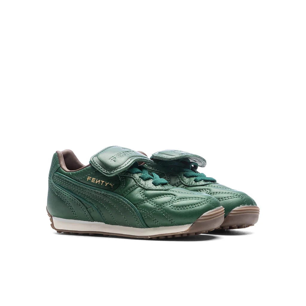 The FENTY x PUMA Avanti is a sport-fashion style inspired by the icon from PUMA’s archives. The Avanti’s football-inspired elements – like a stitched leather upper and gum sole – are given a fashionable twist with a monochromatic finish and debossed FENTY x PUMA branding.