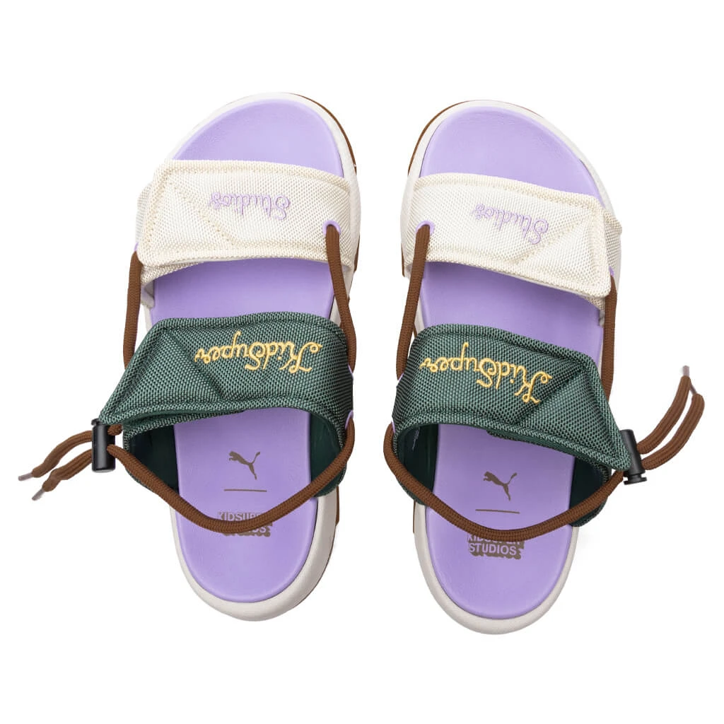 Taking a more natural approach, KidSuper and Puma explore unique attributes with the RS-Sandal. The reworked design offers unique attributes include a hook and loop strap and toggle closure. Its nylon upper is contrasted by a rubber outsole while an IMEVA midsole offers comfort with each step. KidSuper’s signature branding is embroidered upon the strap which coincides with the co-imagery seen upon the insole.