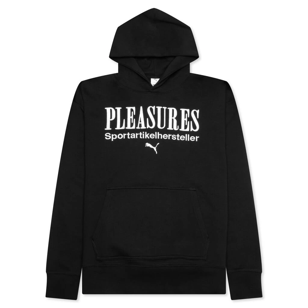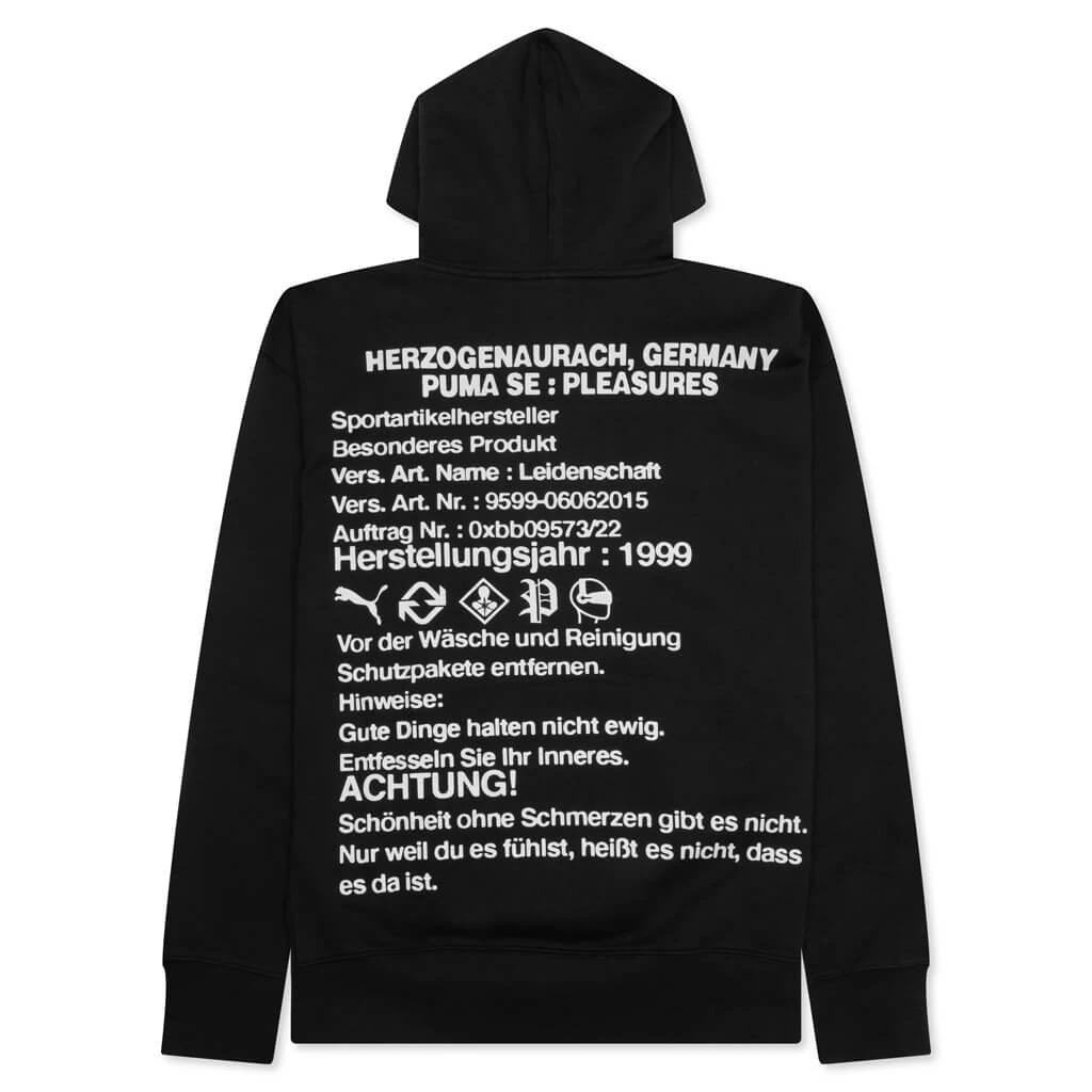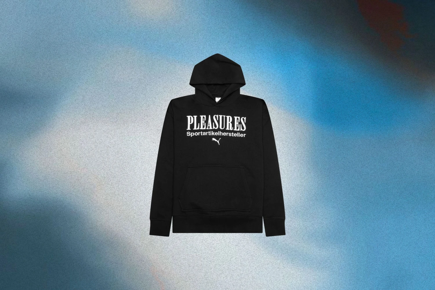 grunge leanings, joins PUMA for another drop. Pleasures injects some of PUMA’s German heritage into this graphic hoodie.Â