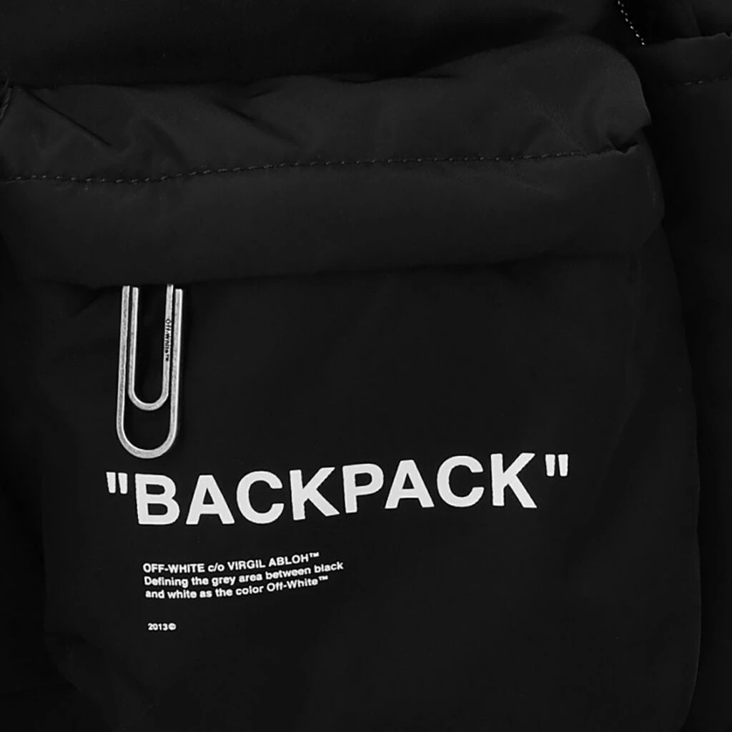 The Off-White Quote Nylon Backpack makes an impression with its blend of leather, polyester, polyamide, and acrylic. The item takes on a printed slogan at the front, while the front zip-fastening compartment and top zip-fastening add a functional touch. The main compartment and single-rounded top handle add additional functionality. The adjustable branded shoulder straps wrap up the remainder of the design.