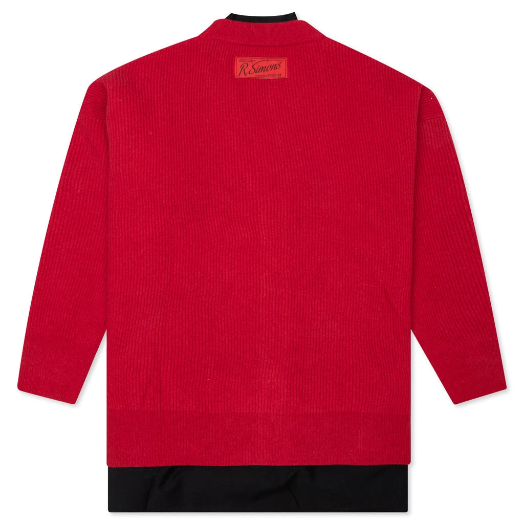 Perfect for the winter weather, the Raf Simons Big Ribbed Knit Cardigan with Fabric Lining features an oversized silhouette with dropped layers and overall layered construction. A v-neck closure is placed with buttons, as well as ribbed knit edges. The complete wool material ties together the overall aesthetic.