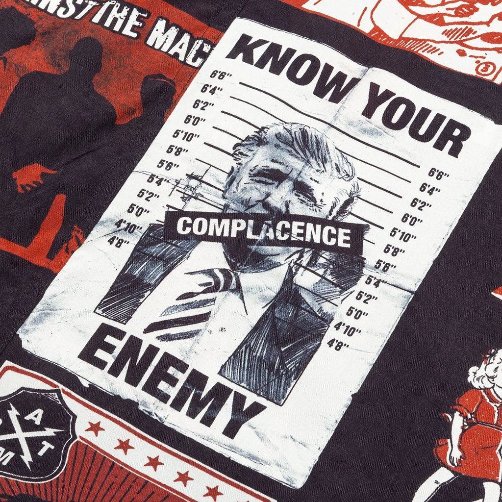 WACKO MARIA was founded in 2005 built on inspiration from American culture consisting of music, film and art. WACKO MARIA’s signature style can be described as high-end streetwear with inspiration pulled from punk, surplus and religious imagery. Pictured is the Wacko Maria Rage Against The Machine S/S Hawaiian Shirt in Black.