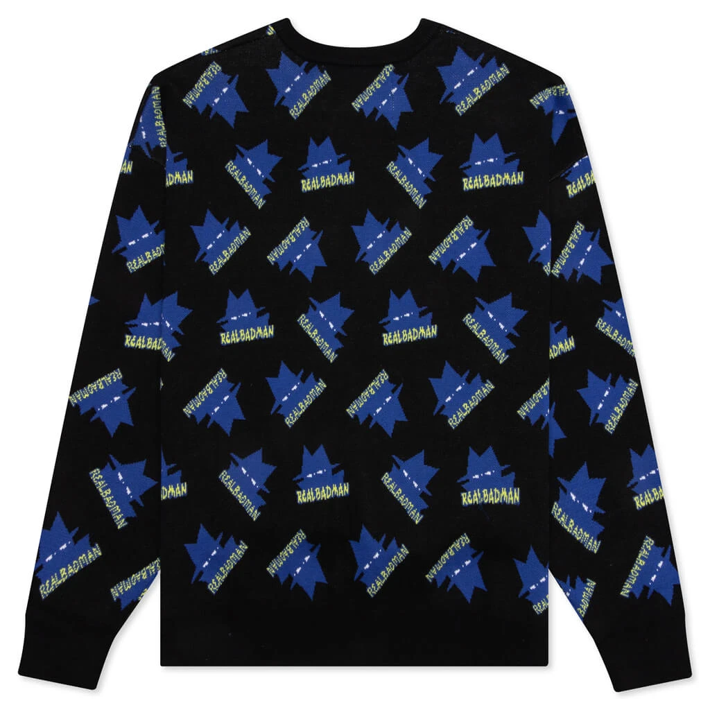 The Rather Large Sweater from Real Bad Man takes on a unique approach to the traditional sweater. Featuring a cotton-cut construction, the design features an all-over jacquard Real Bad Man logo. Made for a relaxed fit, ribbed detailing can be seen at the trims for a detailed finish.