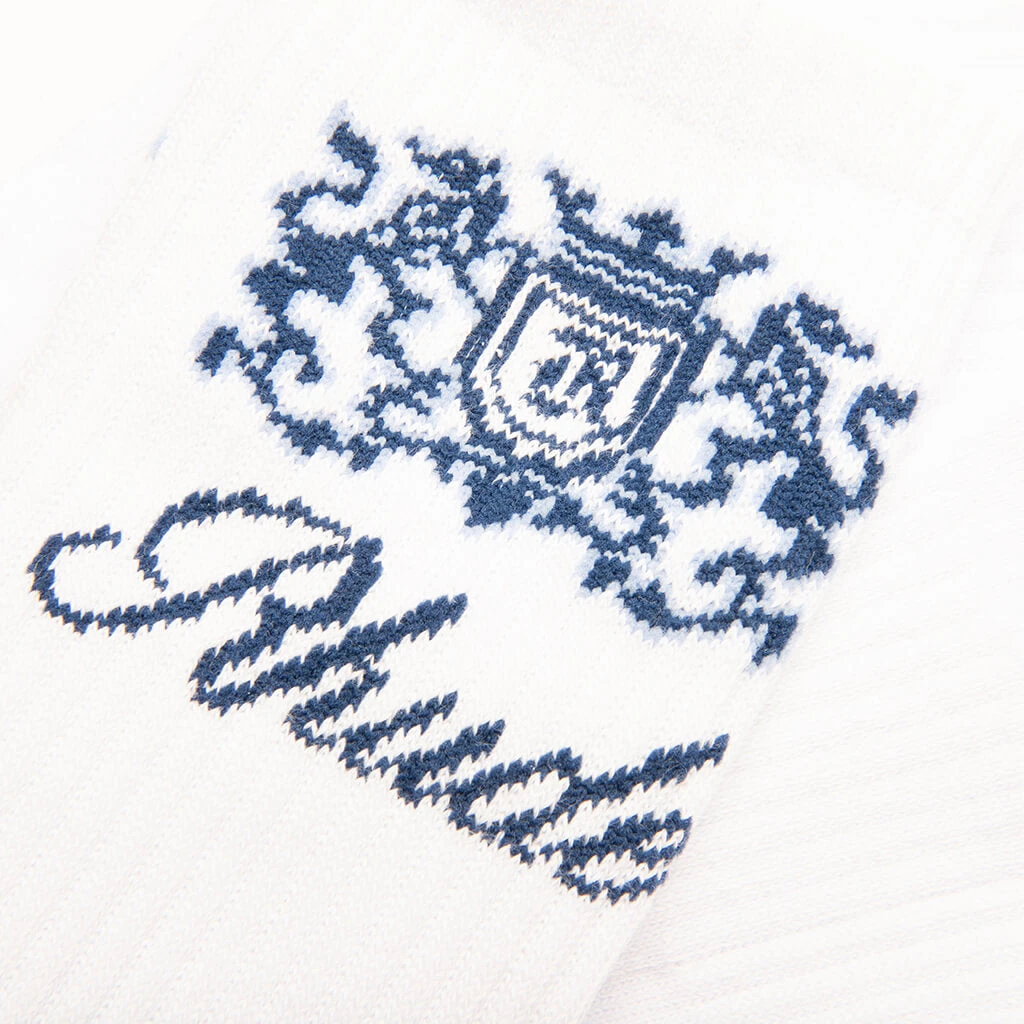 Add a new accessory into your rotation with the Crest Logo Sock from Rhude. The premium design is composed of a blend of polyester, nylon, cotton, and spandex for a comfortable fit. Ribbed detailing is seen at the ankle, while the padded footbed adds additional comfort. Stitched Rhude branding and crest graphics at the ankle finish the design.