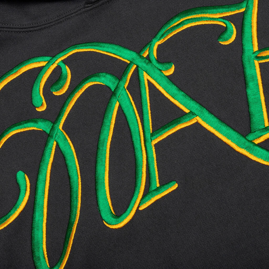 The Awake NY Script Oversized Embroidered Hoodie is a must-have in any apparel collection. The cotton-cut hoodie is made for an oversized fit and includes ribbed detailing at the cuffs and hem. A kangaroo pocket is also placed, while the embroidered script branding wraps up the remainder of the design.