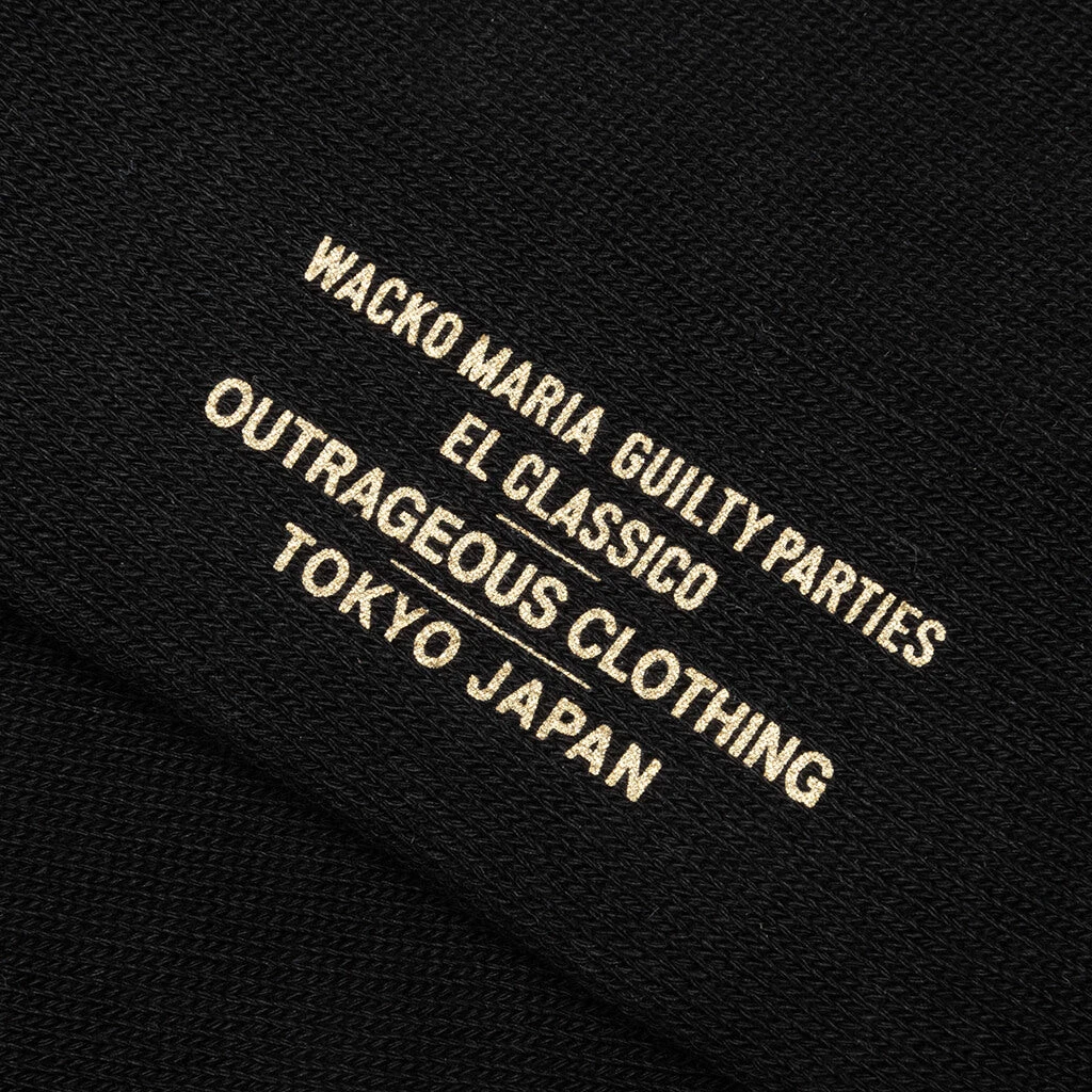 The Wacko Maria Skater Socks emphasize the brand’s high-quality craftsmanship and eccentric taste. The design is made from a soft cotton blend, while a two-tone design is subtly placed. Striped details are placed, highlighting the design. Screen-printed branding near the bottom completes the skater aesthetic.