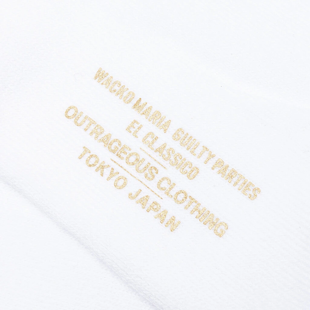 The Wacko Maria Skater Socks emphasize the brand’s high-quality craftsmanship and eccentric taste. The design is made from a soft cotton blend, while a two-tone design is subtly placed. Striped details are placed, highlighting the design. Screen-printed branding near the bottom completes the skater aesthetic.