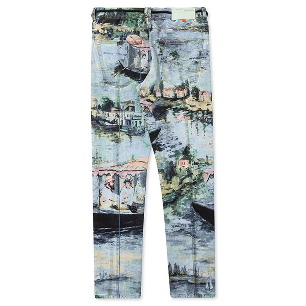 Off-White c/o Virgil Abloh is a fashion label rooted in current culture at a taste-level particular to now. Manufacturing is based in Milan with a core value of the brand to be made from the best available and particular opinion regarding fabric, fit and fabrication. Pictured is the Off-White c/o Virgil Abloh Slim Back Dart in All Over No Color