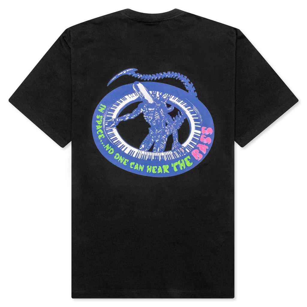 Real Bad Man introduces the Space Bass S/S Tee. The graphic tee features a crew neckline along with screen-printed logo branding and graphics at the front and rear of the design.