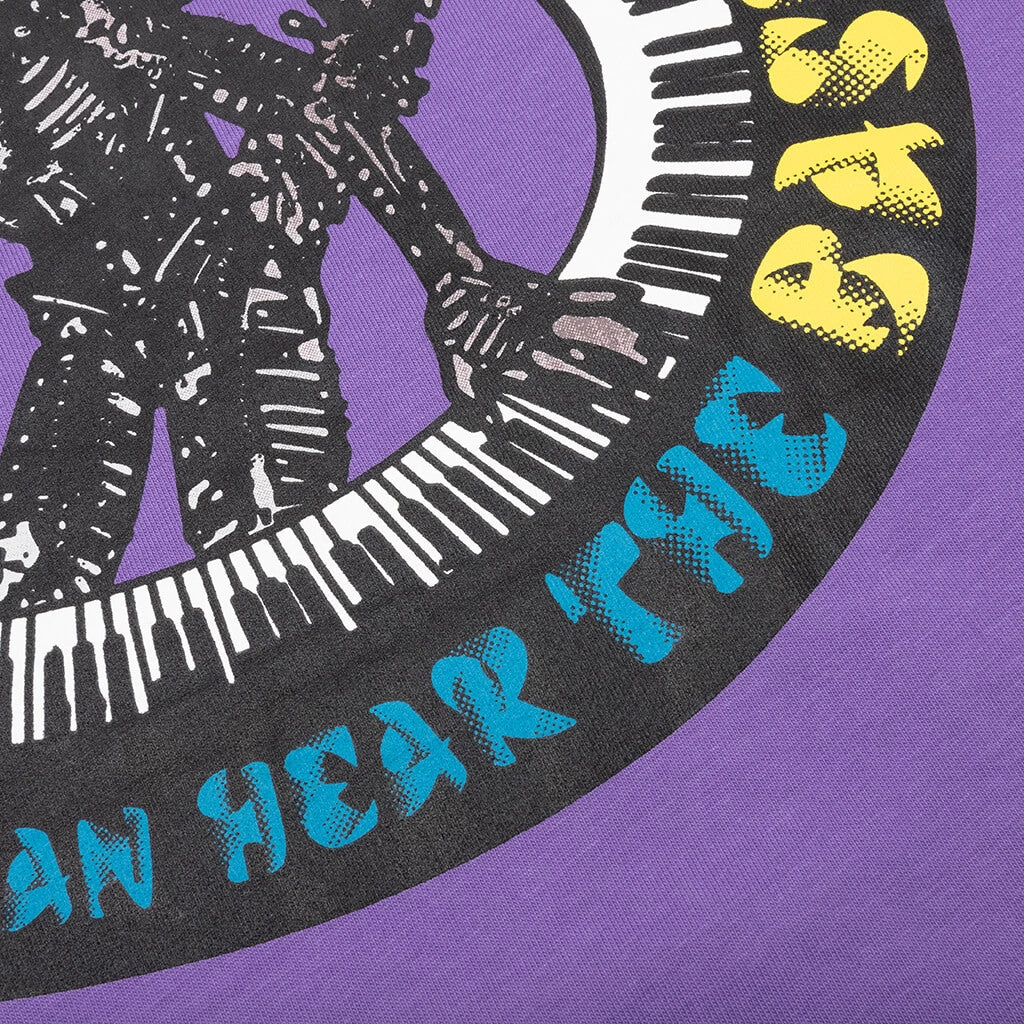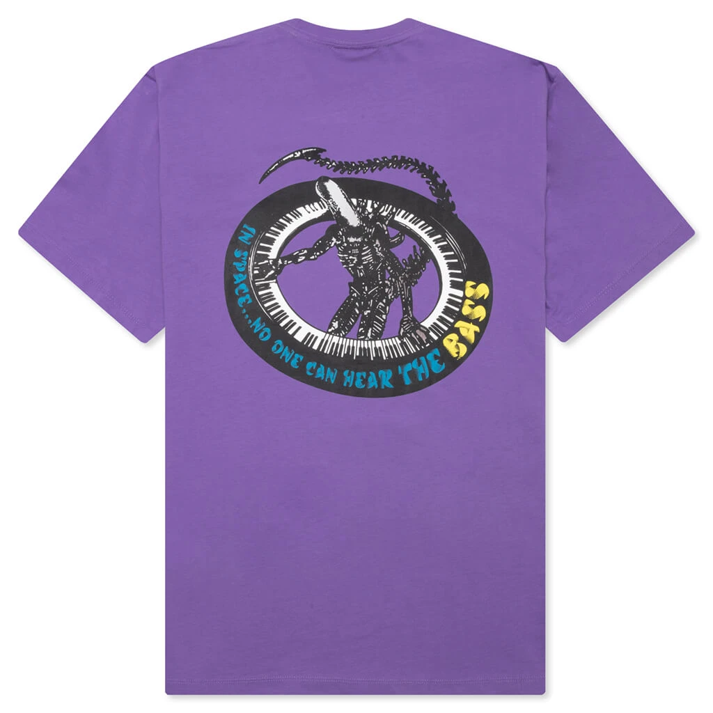Real Bad Man introduces the Space Bass S/S Tee. The graphic tee features a crew neckline along with screen-printed logo branding and graphics at the front and rear of the design.
