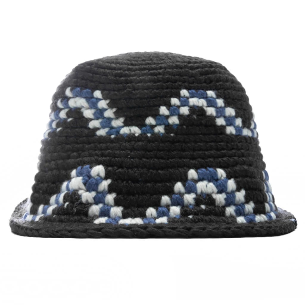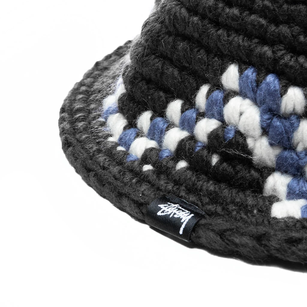 Elevate your headwear rotation with the Stussy Giza Knit Bucket Hat. The silhouette features an acrylic construction paired with an unstructured crown. The 2-color yarn pattern makes a statement, while the Stussy stock flag label sewn around the edge completes the design.