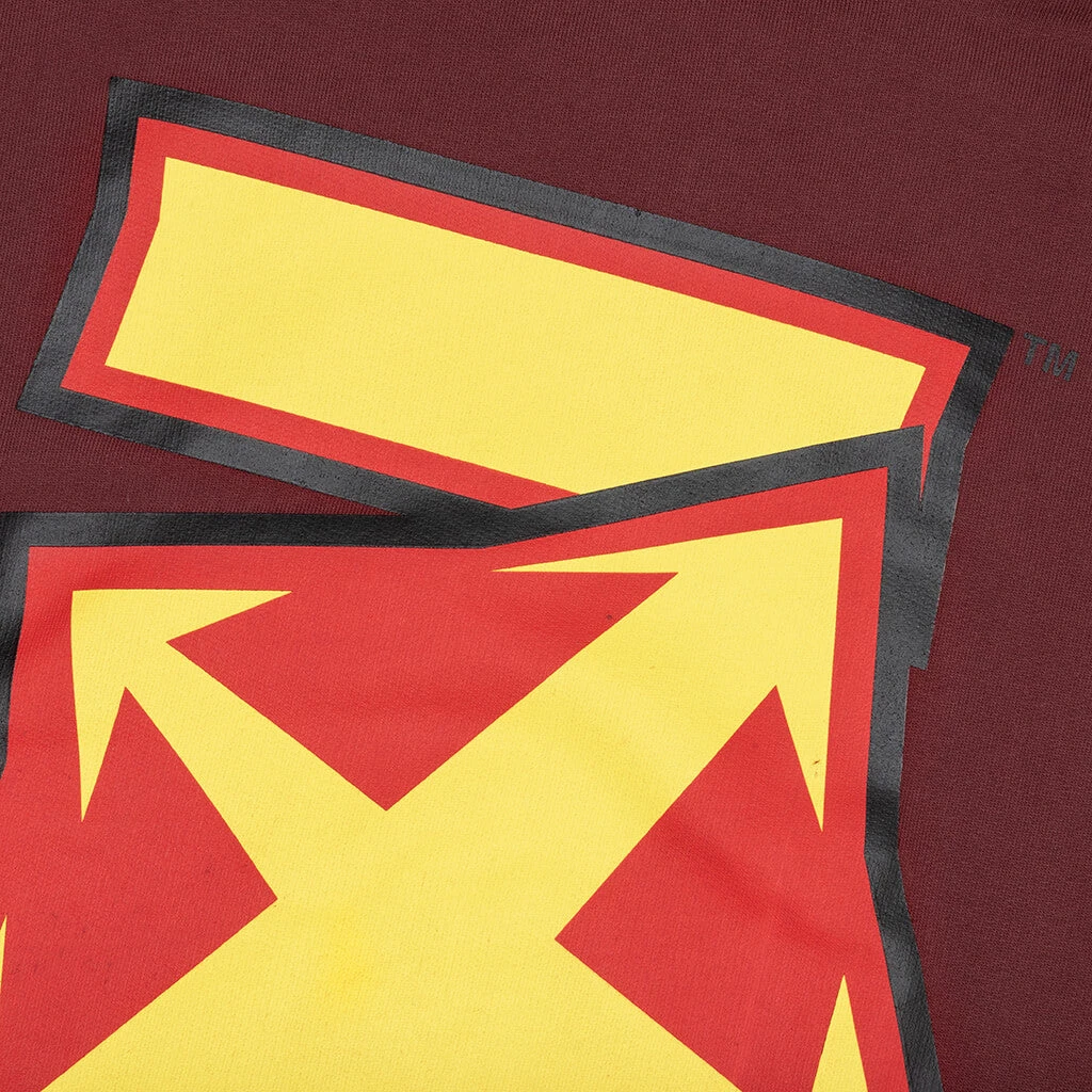 The Thunder Stable Skate Hoodie from Off-White makes a statement in any streetwear apparel collection. The design is composed of cotton and features a drawstring hood for added functionality. Ribbed detailing is seen at the trims, while the kangaroo pocket provides a functional touch. Screen-printed branding is seen at the front. Additional thunder-inspired graphics at the sleeves and rear wrap up the silhouette.