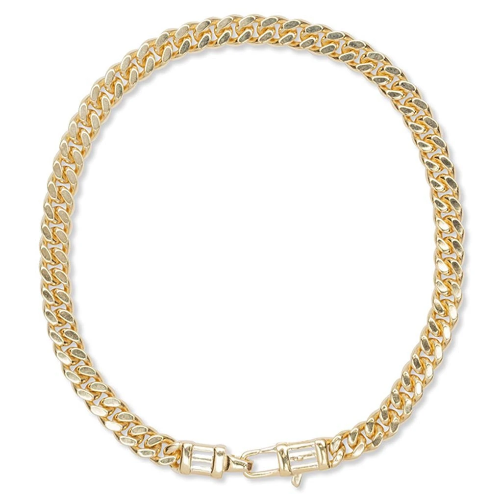 Tom Wood’s modern and minimalist approach to high-end jewelry is present in the Curb Bracelet L Gold. Crafted from authentic and high-quality 925 sterling silver, the design is plated with 9k gold and features a Tom Wood lock for enhanced protection. The bracelet is perfect as a single statement piece or combined with others.