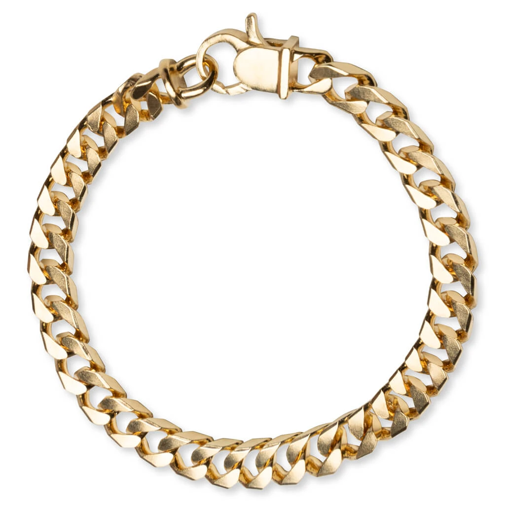 Composed of solid sterling silver, the Frankie Bracelet takes on a classic aesthetic with its polished finish and 18k gold plating that helps strengthen the surface and prevent tarnishing. The custom-made Tom Wood lock secures the design.