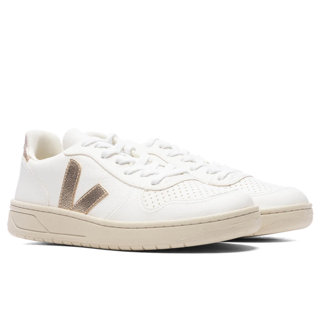 The Veja Women’s V-10 Chromefree Leather makes an impression on any contemporary sneaker rotation. The design takes on a ChromeFree leather upper, panels, and logo V. The insole is composed of Amazonian rubber, sugar cane, recycled E.V.A., and organic cotton. The tech lining and organic cotton laces make an impression. The blend of Amazonian rubber, rice waste, and recycled rubber within the outsole finish the design.