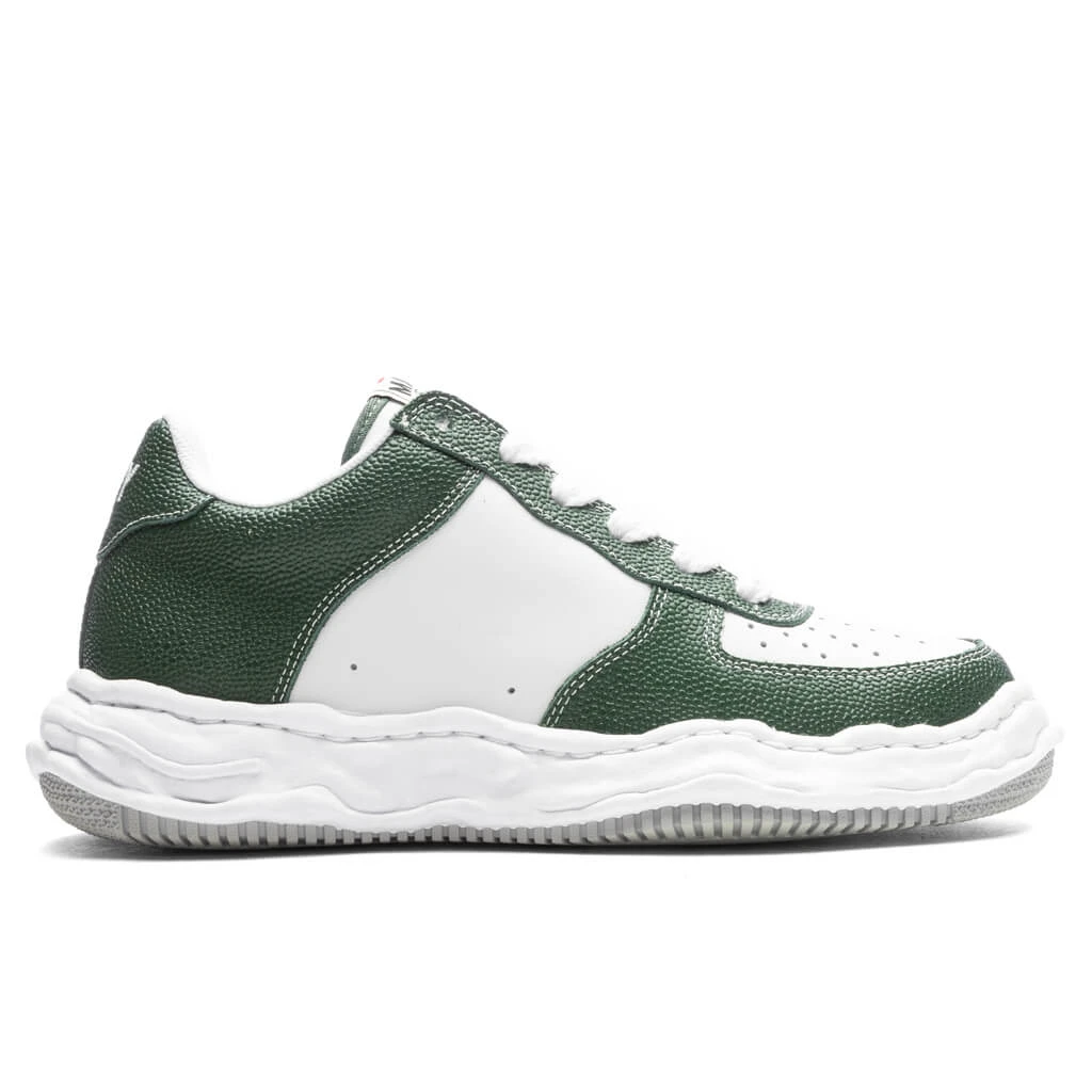 Maison Mihara Yasuhiro footwear embodies elevated and sculptural-inspired components, which are proudly displayed within the Wayne Low OG Sole Basket Leather sneaker. Featuring a leather upper, the silhouette includes a two-tone design and a perforated toe box for breathability. The logo patch at the tongue makes a statement, while the chunky lace-up closure provides security. The silhouette is tied together with a sculptural midsole and chunky rubber outsole, resulting in guaranteed durability.