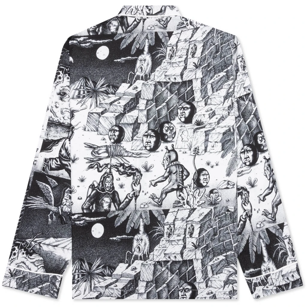 Elevate your sleepwear with Brain Dead’s Wild Things Pajama Top. Designed with a bold and contemporary pattern, the button-up is offered a breathable and comfortable fit with its cotton poplin fabrication. Piped details accent the base while a full-length button closure offers security.