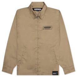 Neighborhood’s grunge aesthetics make their statement in the Zip Work Jacket. Featuring a cotton and polyester construction, the jacket utilizes a zip front closure and single ball-rimmed pockets at both sides. The printed branding and woven label add further dimension. The hand pockets wrap up the rest of the look.